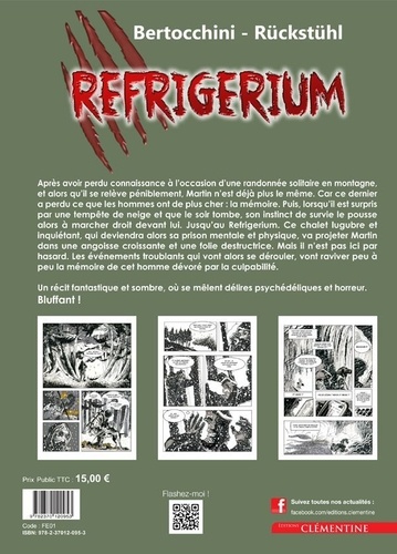 Après avoir perdu connaissance à l'occasion d'une randonnée solitaire en montagne, et alors qu'il se relève péniblement, Martin n'est déjà plus le même. Car ce dernier a perdu ce que les hommes ont de plus cher : la mémoire. Puis, lorsqu'il est surpris par une tempête de neige et que le soir tombe, son instinct de survie le pousse alors à marcher droit devant lui. Jusqu'au Refrigerium. Ce chalet lugubre et inquiétant, qui deviendra alors sa prison mentale et physique, va projeter Martin dans une angoisse croissante et une folie destructrice. Mais il n'est pas ici par hasard. Les évènements troublants qui vont alors se dérouler, vont raviver peu à peu la mémoire de cet homme dévoré par la culpabilité.