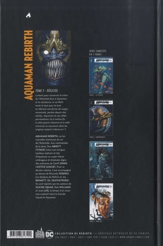 Luttant pour conserver le trône de l'Atlantide face à Aquaman et la résistance, le roi Rath tente le tout pour le tout en libérant une forme de magie ancestrale, perdue depuis des siècles. Aquaman et ses alliés parviendront-ils à mettre fin à cette guerre intestine et à enfin renverser ce souverain dont les origines restent à découvrir ? AQUAMAN REBIRTH, ou les nouvelles aventures du roi de l'Atlantide. Aux commandes de la série, Dan ABNETT (TITANS) mène son intrigue tambour battant et fait d'Aquaman un super-héros ombrageux et téméraire digne des scénarios de Geoff JOHNS (JUSTICE LEAGUES). Pour ce dernier volume, il est accompagné au dessin de Riccardo FEDERICI (La Madone de Pellini) et Joe BENNETT (52, DEATHSTROKE). Ils sont rejoints par les auteurs de SUICIDE SQUAD, Rob WILLIAMS et José LUIS, le temps d'un cross-over explosif entre la Suicide Squad et Aquaman.