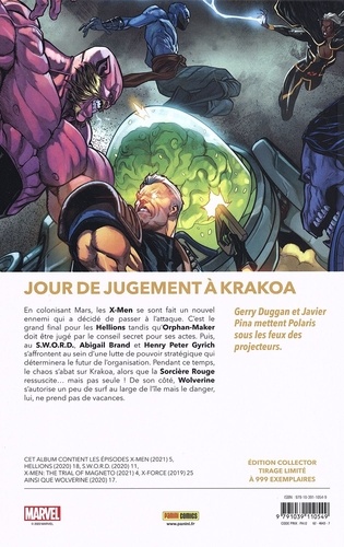 En colonisant Mars, les X-Men se sont fait un nouvel ennemi qui a décidé de passer à l'attaque. C'est le grand final pour les Helions tandis qu'Orphan-Maker doit être jugé par le conseil secret pour ses actes. Puis, au S.W.O.R.D., Abigail Brand et Henry Peter Gyrich s'affrontent au sein d'une lutte de pouvoir stratégique qui déterminera le futur de l'organisation. Pendant ce temps, le chaos s'abat sur Krakoa, alors que la Sorcière Rouge ressuscite... mais pas seule ! De son côté, Wolverine s'autorise un peu de surf au large de l'île mais le danger, lui, ne prend pas de vacances.