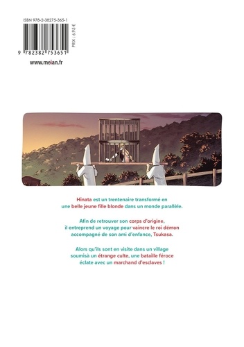 Hinata est un trentenaire transformé en une belle jeune fille blonde dans un monde parallèle. Afin de retrouver son corps d'origine, il entreprend un voyage pour vaincre le roi démon accompagné de son ami d'enfance, Tsukasa. Alors qu'ils sont en visite dans un villagesoumisà un étrange culte, une bataille féroceéclate avec un marchand d'esclaves !