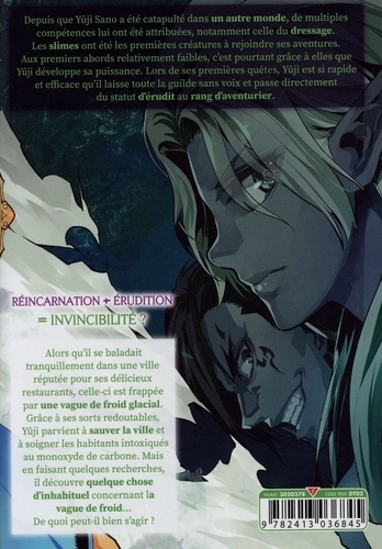 Depuis que Yûji Sano a été catapulté dans un autre monde, de multiples compétences lui ont été attribuées, notamment celle du dressage. Les slimes ont été les premières créatures à rejoindre ses aventures. Aux premiers abords relativement faibles, c'est pourtant grâce à elles que Yûji développe sa puissance. Lors de ses premières quêtes, Yûji est si rapide et efficace qu'il laisse toute la guilde sans voix et passe directement du statut d'érudit au rang d'aventurier. Réincarnation + érudition = invincibilité ? Alors qu'il se baladait tranquillement dans une ville réputée pour ses délicieux restaurants, celle-ci est frappée par une vague de froid glacial. Grâce à ses sorts redoutables, Yûji parvient à sauver la ville et à soigner les habitants intoxiqués au monoxyde de carbone. Mais en faisant quelques recherches, il découvre quelque chose d'inhabituel concernant la vague de froid... De quoi peut-il bien s'agir ?