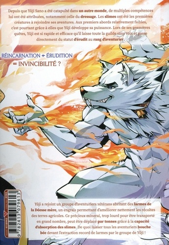 Depuis que Yûji Sano a été catapulté dans un autre monde, de multiples compétences lui ont été attribuées, notamment celle du dressage. Les slimes ont été les premières créatures à rejoindre ses aventures. Aux premiers abords relativement faibles, c'est pourtant grâce à elles que Yûji développe sa puissance. Lors de ses premières quêtes, Yûji est si rapide et efficace qu'il laisse toute la guild directement du statut d'érudit au rang d'aventurier. REINCARNATION ERUDITION INVINCIBILITE ? Yûji a rejoint un groupe d'aventuriers vétérans abritant des larmes de la Déesse mère, un engrais permettant d'améliorer nettement les récoltes des terres agricoles. Ce précieux minerai, trop lourd pour être transporté en grand nombre, peut être déplacé par tonnes grâce à la capacité d'absorption des slimes. De quoi laisser tous les aventuriers bouche bée devant l'extraction record de larmes par le groupe de Yûji !
