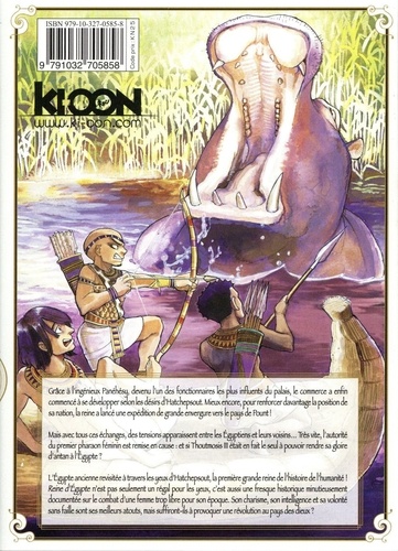Hatchepsout, ou le combat d'une reine au temps des Pharaons ! Grâce à l'ingénieux Panéhésy, devenu l'un des fonctionnaires les plus influents du palais, le commerce a enfin commencé à se développer selon les désirs d'Hatchepsout. Mieux encore, pour renforcer davantage la position de sa nation, la reine a lancé une expédition de grande envergure vers le pays de Pount ! Mais avec tous ces échanges, des tensions apparaissent entre les Egyptiens et leurs voisins... Très vite, l'autorité du premier pharaon féminin est remise en cause : et si Thoutmosis III était en fait le seul à pouvoir rendre sa gloire d'antan à l'Egypte ? L'Egypte ancienne revisitée à travers les yeux d'Hatchepsout, la première grande reine de l'histoire de l'humanité ! Reine d'Egypte n'est pas seulement un régal pour les yeux, c'est aussi une fresque historique minutieusement documentée sur le combat d'une femme trop libre pour son époque. Son charisme, son intelligence et sa volonté sans faille sont ses meilleurs atouts, mais suffiront-ils à provoquer une révolution au pays des dieux ?