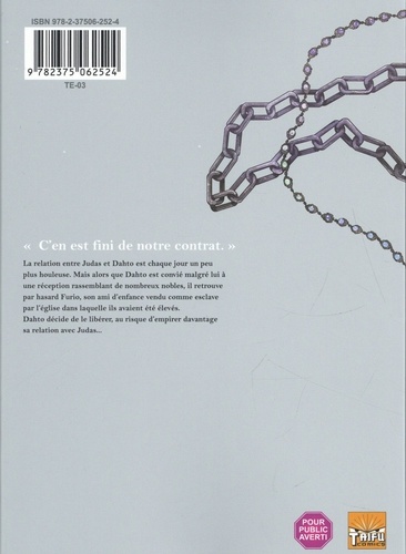 "C'en est fini de notre contrat." La relation entre Judas et Dahto est chaque jour un peu plus houleuse. Mais alors que Dahto est convié malgré lui à une réception rassemblant de nombreux nobles, il retrouve par hasard Furio, son ami d'enfance vendu comme esclave par l'église dans laquelle ils avaient été élevés. Dahto décide de le libérer, au risque d'empirer davantage sa relation avec Judas...
