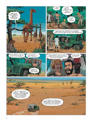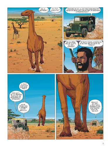 Kenya, 1947. Grâce au témoignage du jeune porteur Tom, on sait enfin ce qu'il est advenu de l'expédition safari organisée par l'écrivain John Remington. Ses membres ont découvert une sorte de mastodonte, une patte coincée dans une crevasse. Quelques heures après, le gentil et timide Roy Vernon disparaissait. La nuit tombée, tandis que John Remington profitait de l'absence de Mr Vernon pour conter fleurette à Mrs Vernon, et que la bête ? en fait un indricothérium parvum ? hurlait à la mort, pétant de trouille, un énorme singe à longs poils dorés et crocs imposants démembrait quelques porteurs avant de dévorer Mrs Remington sous sa tente. - C'est tout Tom ? - Oui, à part le passage, dans le ciel, de deux soucoupes volantes... Catherine Austin, qui mène l'enquête pour les services anglais, va, elle aussi, faire de bien curieuses découvertes. En particulier un extraordinaire parasite, énorme bernard-l'ermite qui passe d'hôte en hôte. Kathy n'échappera au sort peu enviable de zombi qu'en truffant in extremis la bestiole de plomb, au pied de son lit de camp. Bref, comme conclut son distingué patron en dégustant son thé à l'ombre de la Tour de Londres : "Désormais les choses sont simples. Soit des extraterrestres sont en train de nous envahir, et ils vont réussir ! Soit la Troisième Guerre mondiale a déjà commencé, et nous allons la perdre ! " Hommage aux grands feuilletons fantastiques, à Conan Doyle et à son célèbre Monde perdu, mais également à Rice Burroughs, Lovecraft, Bradbury et quelques autres, "Kenya" est une oeuvre décalée, fascinante et jubilatoire. Le dessin classe, sage et élégant de Leo donne un parfum particulier aux découvertes les plus incroyables et aux réflexions les plus crues. Les auteurs de "Trent" se sont collés ensemble au scénario. Le mélange est à la fois détonant et retenu. Très british, quoi...
