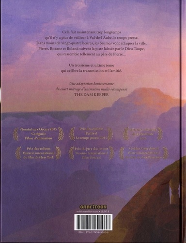 Cela fait maintenant trop longtemps qu'il n'y a plus de veilleur à Val-de-l'Aube, le temps presse. Dans moins de 24 heures, les brumes vont attaquer la ville. Pierre suit la piste laissée par le dieu taupe, qui ressemble tellement à son père... Le troisième et ultime tome de cette trilogie poétique offre un dénouement à la hauteur de son univers : juste mais sans fard, célébrant la transmission et l'amitié.