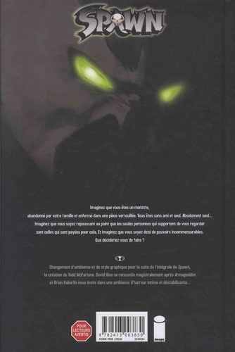 Changement d'ambiance et de style graphique pour la suite de l'intégrale de Spawn, la création de Todd McFarlane. David Hine se renouvèle magistralement après Armageddon et Brian Haberlin nous invite dans une ambiance d'horreur intime et déstabilisante. Imaginez que vous êtes un monstre, abandonné par votre famille et enfermé dans une pièce verrouillée. Vous êtes sans ami, et seul. Absolument seul... Imaginez que vous soyez repoussant au point que les seules personnes qui supportent de vous regarder sont celles qui sont payées pour cela. Et imaginez que vous soyez dotés de pouvoirs incommensurables. Que décideriez-vous de faire ?