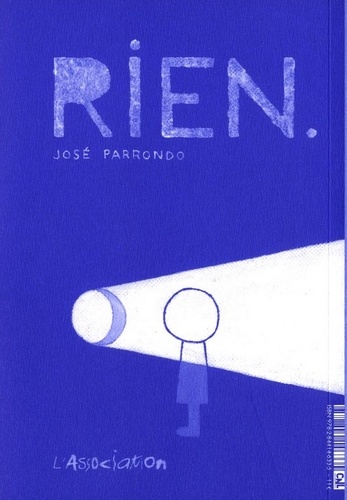 « Le rien contient du rien et rien d'autre », mais le rien renvoie-t-il nécessairement au vide, à l'absence, à l'inexistant ? Finalement, rien n'est moins sûr. Et comme José Parrondo n'est sûr de rien, il observe, il s'observe parmi les autres et le monde qui l'entoure. Il s'égare aussi et ses déambulations l'amènent à d'infimes découvertes et à des révélations microscopiques. Il nous murmure à l'oreille que les choses n'attestent pas de leur présence mais révèlent au contraire, en négatif, un ordre inversé et insoupçonné. Son sens de l'absurde questionne avec impertinence et fantaisie l'endroit, l'envers, le dedans, le dehors et plus largement le monde des apparences. C'est une quête de sens et de soi très discrète et, dans sa légèreté, il y a une mélancolie perçant à travers des observations malicieuses. Alternant des courtes bandes dessinées, des illustrations, des gravures, des photographies et des micro-textes, avec Rien, José Parrondo poursuit sa voie minimaliste en multipliant les techniques et les possibilités de raconter. Elles se font écho, produisent des frottements entre elles, ponctuent et font progresser un récit qui suit son bonhomme de chemin jusqu'à toucher tout un chacun.