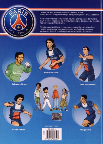 LA PREMIERE BD JEUNESSE OFFICIELLE DU PSG ! Le rêve de Tom, Abou et Yoann est devenu réalité : ils ont réussi à intégrer les rangs de la prestigieuse PSG Academy ! Mais le plus dur les attend encore... Entre l'intense compétition pour gagner sa place de titulaire et un tournoi réputé, opposant les meilleures équipes de jeunes du monde, nos héros auront fort à faire. Rivalités, compétitions, revanches et coups durs les attendent. Mais ils seront toujours liés par leur passion pour le foot et pour leur club. Et ils pourront de nouveau compter sur l'aide de plusieurs superstars du club pour les aider et les guider sur le chemin du succès !