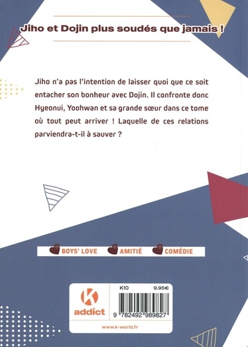Jiho n'a pas l'intention de laisser quoi que ce soit entacher son bonheur avec Dojin. Il confronte donc Hyeonui, Yoohwan et sa grande soeur dans ce tome où tout peut arriver ! Laquelle de ces relations parviendra-t-il à sauver ?