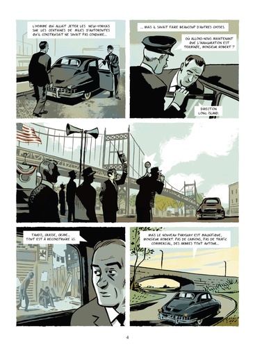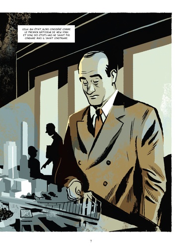 A New York, il est presque impossible de marcher, de rouler, de nager, de pratiquer un sport, de s'asseoir ou même de dormir sans utiliser la création d'un certain Robert Moses, véritable équivalent new-yorkais du baron Haussmann. De 1930 à 1970, cet architecte va littéralement transformer le visage de la Grande Pomme en construisant quelques-unes de ses structures les plus célèbres comme le pont de Verrazano. Grand urbaniste, il créera également de nombreuses aires de jeux, des piscines ou des écoles et bâtira 150 000 logements, remplaçant ainsi ceux qu'il avait fait détruire pour dégager de soi-disant taudis et faire passer ses routes... Car par ses grands travaux, Moses deviendra un homme controversé, faisant peu de cas des populations défavorisées et des minorités en se rendant notamment responsable de la " ségrégation invisible ". Dans cet élégant roman graphique, le célèbre Pierre Christin, passionné d'architecture, choisit de nous raconter le destin de ce personnage hors norme mais encore méconnu en France, qui fut pourtant l'un des principaux maîtres d'oeuvre de la plus célèbre ville du monde. La ligne claire revisitée d'Olivier Balez se révèle dans le style architectural, restituant à merveille la grande New York et ses structures majestueuses.