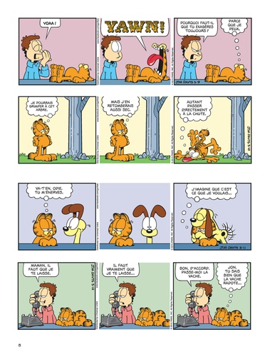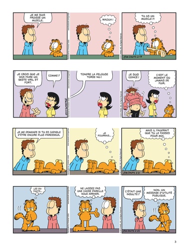 "It's goog to be the king", comme disait le poète Mel Brooks. Et le roi Garfield n'a pas fini d'en profiter avec ce nouveau tome plein de gags et de fureur (ah non, en fait seulement plein de gags). Sa jungle est un salon, son trône un vieux fauteuil confortable, son sceptre une télécommande et sa devise "mon royaume pour une lasagne". Et si sa cour n'est composée que d'un pauvre fou (Jon), d'un chien stupide (Odie), et d'un chat trop mignon pour être honnête (Nermal), c'est toujours un Garfield en majesté, égale à lui-même, cynique et gras, comme on l'aime.
