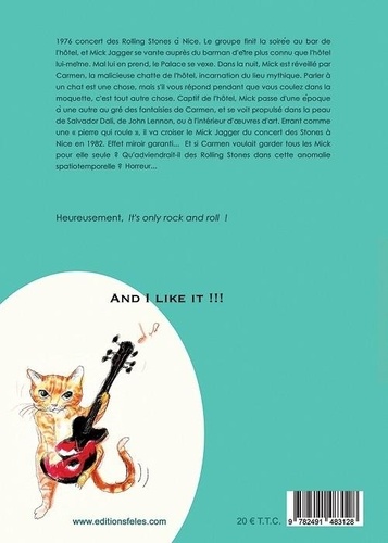 1976 concert des Rolling Stones à Nice. Le groupe finit la soirée au bar de l'hôtel, et Mick Jagger se vante auprès du barman d'être plus connu que l'hôtel lui-même. Mal lui en prend, le Palace se vexe. Dons la nuit, Mick est réveillé par Carmen, la malicieuse chatte de l'hôtel, incarnation du lieu mythique. Parler à un chat est une chose, mais s'il vous répond pendant que vous coulez dons la moquette, c'est tout autre chose. Captif de l'hôtel. Mick passe d'une époque à une autre ou gré des fantaisies de Carmen, et se voit propulsé dans la peau de Salvador Dali, de John Lennon, ou à l'intérieur d'oeuvres d'art. Errant comme une "pierre qui roule", il va croiser le Mick Jagger du concert des Stones à Nice en 1982. Effet miroir garanti... Et si Carmen voulait garder tous les Mick pour elle seule ? Qu'adviendrait-il des Rolling Stones dans cette anomalie spatiotemporelle ? Horreur... Heureusement, It's only rock and roll ! And I like it !