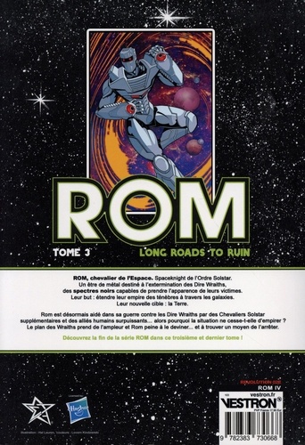 ROM est désormais aidé dans sa guerre contre les Dire Wraiths par des Chevaliers Solstar supplémentaires et des alliés humains surpuissants... alors pourquoi la bataille va-t-elle de mal en pis ? Le plan des Wraiths prend de l'ampleur et ROM ne peut même pas le deviner, et encore moins trouver un moyen de l'arrêter... ! Conclusion de la série ROM.