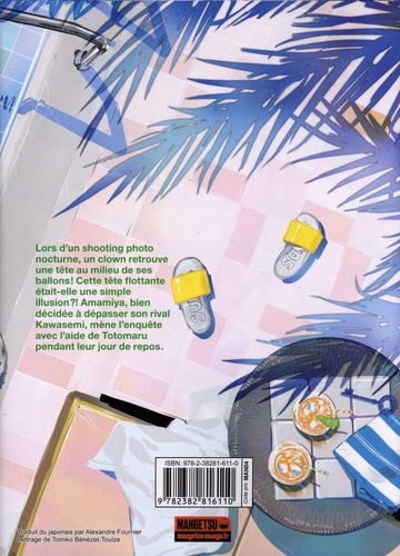 Lors d'un shooting photo nocturne, un clown retrouve une tête au milieu de ses ballons ! Cette tête flottante était-elle une simple illusion ? ! Amamiya, bien décidée à dépasser son rival Kawasemi, mène l'enquête avec l'aide de Totomaru pendant leur jour de repos. Après Reborn ! , découvrez la nouvelle série à succès d'Akira Amano : Ron Kamonohashi : Deranged Detective ! Un manga d'enquête plébiscité par les lecteurs du Shonen Jump +, aux personnages loufoques et à la narration dynamique. "Avides de mystères et d'enquêtes insolubles ? Voici un nouveau détective dans le game : Ron Kamonohashi". Japan Live "Amano au sommet de son art. Un sans-faute ! " Dylan, libraire au Furet du Nord Louvroil " Ron Kamonohashi nous régale d'abord de sa fraîcheur, mais finit par nous intriguer pour tous ses mystères. " Animeland XTra "Ron Kamonohashi - Deranged detective possède un rythme haletant et une très bonne gestion du suspense et de la narration". L'Avis des bulles