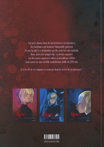 Jeune fille discrète, Rose a un secret : elle a le pouvoir de se dédoubler ! Son esprit peut quitter son corps et pénétrer dans les appartements pour regarder vivre les gens. Ce don, elle ne le comprend pas. Elle l'appelle sa "maladie". Elle n'a jamais réussi à en parler : ni à sa mère, morte après sa naissance, ni à son père, devenu détective privé à la mort de sa femme. Un jour, tout bascule : son père est abattu d'une balle dans la tête ! Rose décide alors de reprendre l'affaire de son père pour découvrir son assassin. Enfin, son pouvoir va lui être utile ! Mais son double va faire une rencontre étonnante : celle de trois fantômes qui vivent, coincés par un envoûtement, dans l'immeuble paternel. Et ils en savent long sur l'histoire familiale. Détective malgré elle, Rose va devoir enquêter sur des morts suspectes liées à un tableau célèbre mais aussi sur une malédiction vieille de 500 ans. Et si la clé de ces énigmes se trouvait dans le secret de sa naissance ? Une intégrale qui réunit les trois tomes publiés entre 2017 et 2019, complétée par un dossier graphique de 16 pages à la fin de l'album.