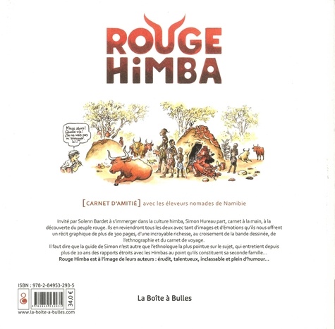Un carnet de reportage sur les Himbas (peuple premier révélé au grand public par les émissions RV en terre inconnue et Ushuaia) d'une incroyable richesse culturelle et humaine. Les Himbas sont un peuple premier qui, bien qu'en contact avec la civilisation occidentale, a décidé de conserver son mode de vie. Solenn Bardet les connaît très bien, puisqu'à peine majeure, il y a 20 ans, elle est allée vivre avec eux, se faisant même adopter par une famille himba. En 2015, elle convainc Simon Hureau de la suivre dans son prochain périple en Namibie. Pour Solenn, les objectifs de ce voyage sont multiples : se rendre sur la tombe de son défunt père, présenter sa fille Zélie à sa famille himba et à ses amies et résoudre des conflits entre clans qui paralysent l'avancement des projets de l'association Kovahimba... Sur cette terre aride où rien n'est simple, organiser une simple réunion demande patience et persévérance. Aux côtés de Solenn, Simon Hureau et le lecteur découvrent la beauté, l'étrangeté de ce pays et de ses habitants. Dépaysant, instructif, magique...