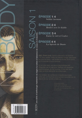 Déjà , le 2e épisode de No Body, une série d'anthologie où règne la notion d'absence de corps et d'identité. . 2007, états-Unis. Dans le Montana, un homme 57 ans, solide, barbu et cheveux longs, tatouages sur tout le corps est arrêté sur le lieu d'un crime qu'il s'accuse d'avoir commis. Un an plus tard, une jeune psychologue est diligentée par le juge pour réaliser une expertise psychologique de cet homme. Il livre son récit mais certains éléments ne collent pas... Dans ce nouvel épisode, l'homme révèle avoir infiltré, dans les années 70, un gang de bikers violent. Le lecteur fera quelques découvertes clés... Quelles sont la provenance et la signification de certains de ses tatouages ? Quels sont les réels objectifs de l'organisation gouvernementale, BET ? Ou encore, qui est Henry, son co-équipier qu'il dit avoir assassiné ? ... Les pièces du puzzle s'emboîtent peu à peu, mais dans le désordre afin de constituer, au 4e et dernier épisode, le tableau final. Si les personnages et leur histoire sont fictifs, Cointelpro et le plan Northwoods sont réels, reconnus par les états-Unis et déclassifiés.