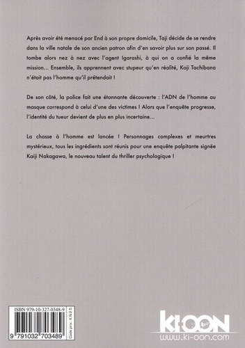 Après avoir été menacé par End à son propre domicile, Taji décide de se rendre dans la ville natale de son ancien patron afin d'en savoir plus sur son passé. Il tombe alors nez à nez avec l'agent Igarashi, à qui on a confié la même mission... Ensemble, ils apprennent avec stupeur qu'en réalité, Koji Tachibana n'était pas l'homme qu'il prétendait ! De son côté, la police fait une étonnante découverte : l'ADN de l'homme au masque correspond à celui d'une des victimes ! Alors que l'enquête progresse, l'identité du tueur devient de plus en plus incertaine... La chasse à l'homme est lancée !