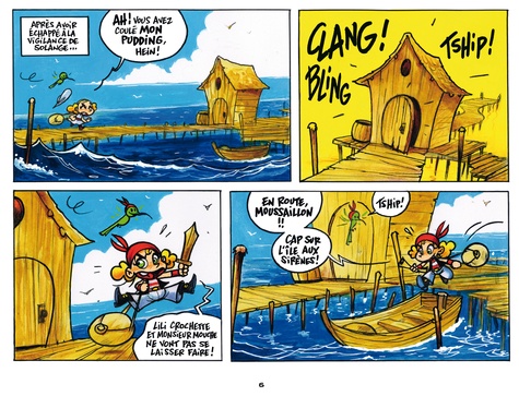 La petite Elizabeth, fille unique du gouverneur, a un caractère bien trempé. A la moindre occasion, elle se transforme incognito en Lili Crochette. Prête pour l'aventure, elle peut compter sur l'aide de Monsieur Mouche, le plus malin des colibris. Quand Lili découvre que son gâteau préféré a été envoyé par le fond, elle voit rouge. Ni les sirènes ni les requins ne peuvent lui barrer le chemin, surtout quand elle a faim...