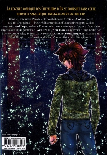 La légende cosmique des chevaliers d'or se poursuit dans cette nouvelle saga épique, intégralement en couleur. Dans le Sanctuaire Parallèle, le combat entre Aiolia et Aiolos connaît une fin dramatique... Pour réaliser sa vision d'un avenir radieux, Aiolos, devenu Grand Pope, ordonne l'invasion à travers le temps et l'espace d'une autre dimension ! Ikki, héritier de l'Armure d'Or du Lion, est parvenu à faire brûler son Cosmos jusqu'à gagner le droit de revêtir l'Armure Authentique. Il fait face à un Aiola, qui, transformé en démon, s'est éveillé au neuvième sens !
