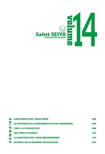 De tout temps, lorsque de grands bouleversements se produisent dans l'histoire, les chevaliers du zodiaque ne sont pas loin... Liés à la mythologie antique, ils passent aujourd'hui inaperçus et nous avons presque oublié leur existence. Pourtant, ils sont au Japon, ils vont revenir pour défendre la terre et sauver la réincarnation d'Athéna ! Force et courage sont nécessaire pour devenir chevalier. C'est ce que Seiya a appris lorsqu'il s'entraînait dans le sanctuaire en Grèce. Pour remporter l'armure d'or et retrouver sa sœur, il doit affronter lors d'un tournoi les dix chevaliers de Bronze. Mais l'armure est volée avant la fin du tournoi par l'un de ces chevaliers qui veut conquérir le monde. Une lutte s'engage alors, les chevaliers de Bronze devront s'unir pour défendre la terre... Une magnifique édition reprenant l'intégrale de Saint Seiya avec des posters et des pages couleurs. Un manga culte !