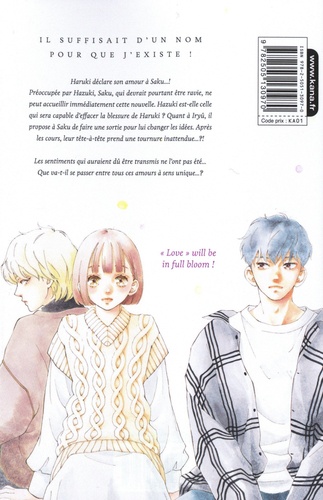 Haruki déclare son amour à Saku... ! Préoccupée par Hazuki, Saku, qui devrait pourtant être ravie, ne peut accueillir immédiatement cette nouvelle. Hazuki est-elle celle qui sera capable d'effacer la blessure de Haruki ? Quant à Iryû, il propose à Saku de faire une sortie pour lui changer les idées. Après les cours, leur tête-à-tête prend une tournure inattendue... ? ! Les sentiments qui auraient dû être transmis ne l'ont pas été... Que va-t-il se passer entre tous ces amours à sens unique... ?