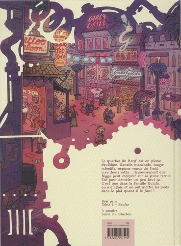 Le quartier du Riff est en pleine ébullition. Bandits manchots, magie interdite, espions venus du froid, inventeurs ratés... Heureusement que Riggs peut compter sur sa jeune recrue Ese pour démêler un peu tout ça... C'est que dans la famille Kululu, on a du flair, et on sait mettre les pieds dans le plat quand il le faut !