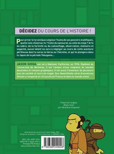 Pour priver le tyrannique seigneur Touma de ses pouvoirs maléfiques, quelle voie choisiras-tu ? Celte du samouraï, ou celle du ninja ? Arts du sabre, de La furtivité ou du camouflage, observation, mémoire et sagacité, aucun talent ne sera à négliger au cours de cette aventure périlleuse dont tu seras le héros ou l'héroïne, et qui te plongera dans le Japon de la période Tokugawa...