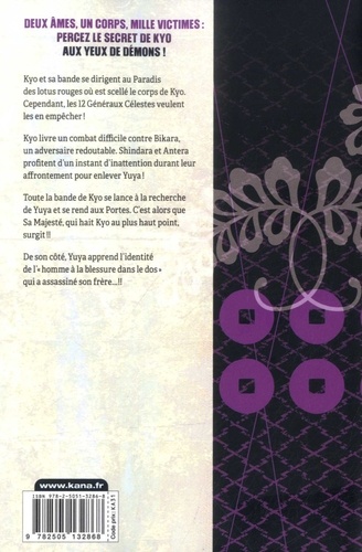 Kyo et sa bande se dirigent au Paradis des lotus rouges où est scellé le corps de Kyo. Cependant, les 12 Généraux Célestes veulent les en empêcher ! Kyo livre un combat difficile contre Bikara, un adversaire redoutable. Shindara et Antera profitent d'un instant d'inattention durant leur affrontement pour enlever Yuya ! Toute la bande de Kyo se lance à la recherche de Yuya et se rend aux Portes. C'est alors que Sa Majesté, qui hait Kyo au plus haut point, surgit !! De son côté, Yuya apprend l'identité de l'homme à la blessure dans le dos" qui a assassiné son frère...! !