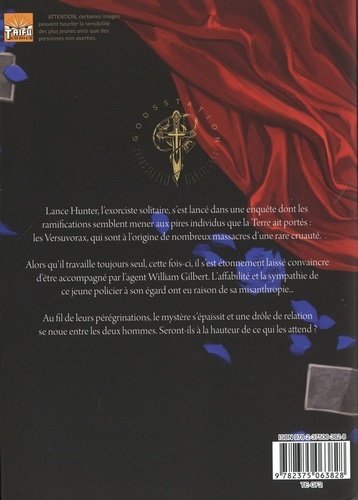 Lance Hunter, l'exorciste solitaire, s'est lancé dans une enquête dont les ramifications semblent mener aux pires individus que la Terre ait portés : les Versuvorax, qui sont à l'origine e nombreux massacres d'une rare cruauté. Alors qu'il travaille toujours seul, cette fois-ci, il s'est étonnement laissé convaincre d'être accompagné par l'agent William Gilbert. L'affabilité et la sympathie de ce jeune policier à son égard ont eu raison de sa misanthropie... Au fil de leurs pérégrinations, le mystère s'épaissit et une drôle de relation se noue entre les deux hommes. Seront-ils à la hauteur de ce qui les attend ?
