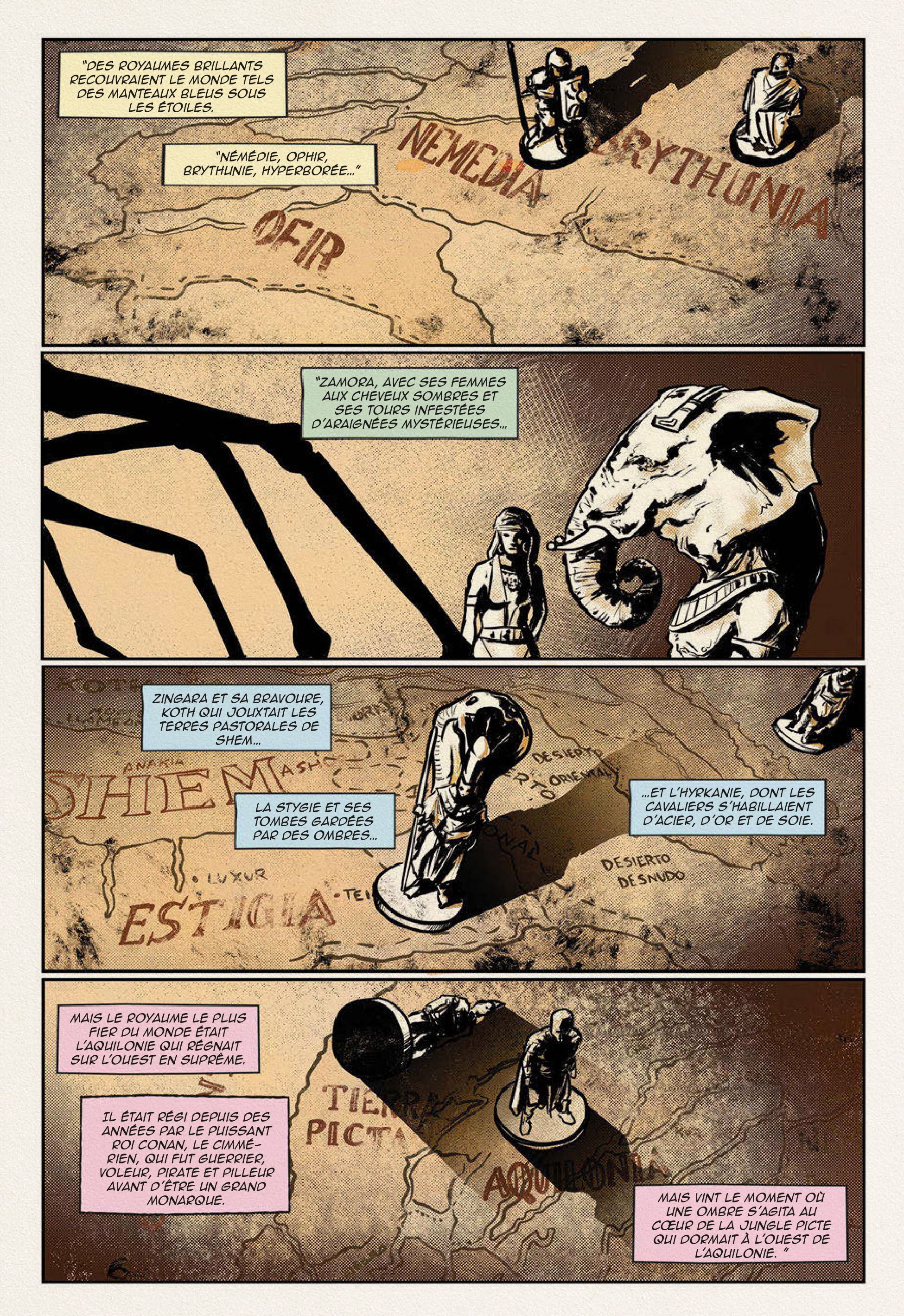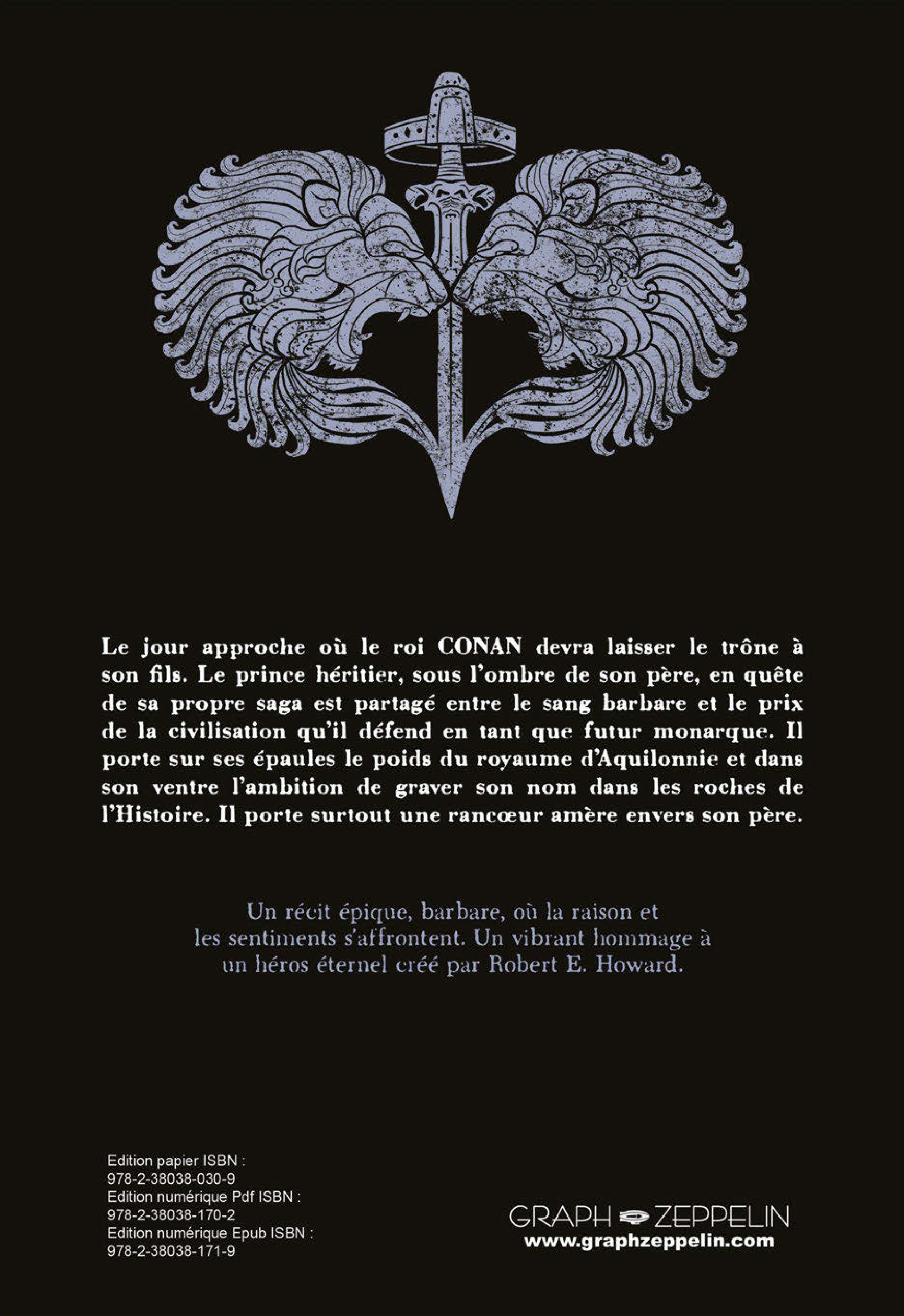 Le jour approche où le roi Conan devra laisser le trône à son fils. Le prince héritier sous l'ombre de son père, en quête de sa propre saga est partagé entre le sang barbare et le prix de la civilisation qu'il défend en tant que futur monarque. Il porte sur ses épaules le poids du royaume d'Aquilonnie et dans son ventre l'ambition de graver son nom dans les roches de l'Histoire. Il porte surtout une rancoeur amère envers son père. Un récit épique, barbare, où la raison et les sentiments s'affrontent. Un vibrant hommage à un héros éternel créé par Robert E. Howard.