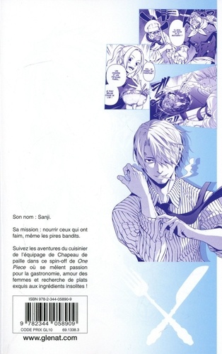 Un manga à dévorer Son nom : Sanji. Sa mission : nourrir ceux qui ont faim, même les pires bandits. Suivez les aventures du cuisinier de l'équipage de Chapeau de paille dans ce spin-off de One Piece où se mêlent passion pour la gastronomie, amour des femmes et recherche de plats exquis aux ingrédients insolites ! Quand les auteurs de Food Wars rencontrent la cuisine de Sanji, le résultat est à la fois haut en couleurs et savoureux. Un one shot à déguster sans modération.