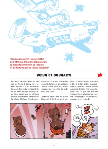 Depuis vingt-cinq ans, "Le Petit Spirou" est un modèle d'anticonformisme et d'humour libre. Au fil des albums, le malicieux garçon, irrévérencieux, gentiment provocateur, s'est imposé comme une icône de la culture populaire, comme son alter ego adulte à la vie d'aventurier. A l'occasion de cet anniversaire, Tome & Janry, créateurs de ce garnement, racontent en images leurs souvenirs d'une aventure éditoriale sans interdits.