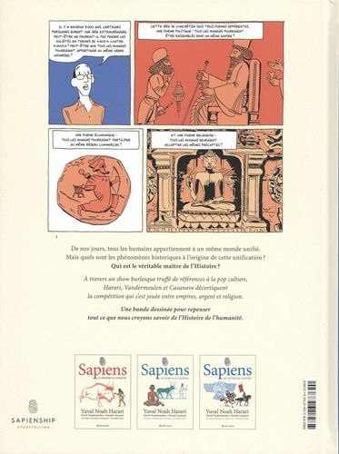 De nos jours, tous les humains appartiennent à un même monde unifié. Mais quels sont les phénomènes historiques à l'origine de cette unification ? Qui est le véritable maître de l'Histoire ? A travers un show burlesque truffé de références à la pop culture, Harari, Vandermeulen et Casanave décortiquent la compétition qui s'est jouée entre empires, argent et religion.