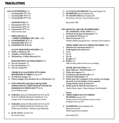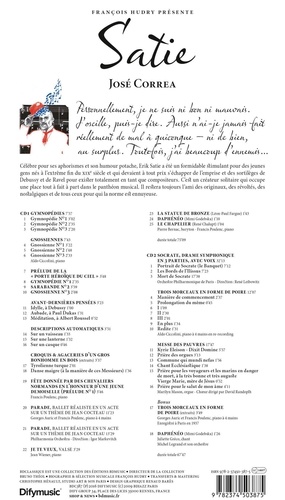 Célèbre pour ses aphorismes et son humour potache, Erik Satie a été un formidable stimulant pour des jeunes gens nés à l'extrême fin du XIXe siècle et qui devaient à tout prix s'échapper de l'emprise et des sortilèges de Debussy et de Ravel pour exister totalement en tant que compositeurs. C'est un créateur solitaire qui occupe une place tout à fait à part dans le panthéon musical. Il restera toujours l'ami des originaux, des révoltés, des nostalgiques et de tous ceux pour qui la norme est ennuyeuse.