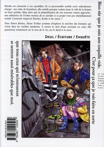 Dans Saturn Return, Akane Torikai continue d'explorer le mal-être des humains qui vivent dans les sociétés modernes. A travers le récit d'une écrivaine en crise, elle questionne notamment sur le sens de la vie, sur le deuil et la mort. Ritsuko est retournée à son quotidien. Et sa personnalité semble avoir radicalement changé : aux côtés de Kazufumi, elle semble presque vouloir jouer le rôle de la femme au foyer parfaite. Mais alors que la prépublication de son nouveau roman approche, une utilisatrice de Twitter menace de se suicider si ce projet n'est pas immédiatement annulé. Comment réagiront Ritsuko, Koide et les autres ?