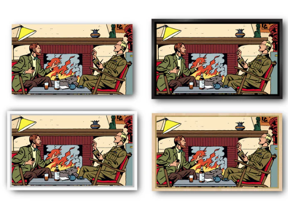 Onze Amerikaanse lijsten met een "L"-profiel worden met de hand gemaakt in Frankrijk van massief hout. Deze frames bieden een elegante esthetiek zonder de aandacht van het werk af te leiden. Ze zijn verkrijgbaar in verschillende afwerkingen om te harmoniseren met de wereld van strips.