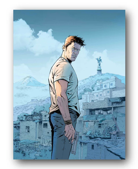 Tekening van Philippe Xavier, een FINE ART-kwaliteit schilderij op een premium polycotton canvas van 350 g/m2, gemonteerd op een houten frame en voorzien van een ophanghaak.