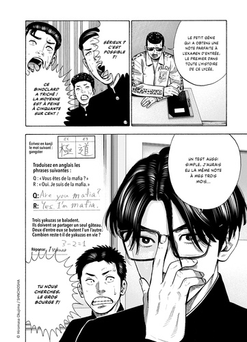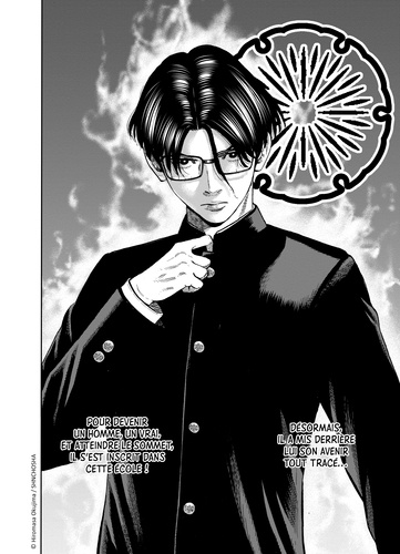 "Je compte bien atteindre le sommet de la hiérarchie de cette école". A 15 ans, Jôichirô Kirinji, fils du Premier ministre, étudie sans relâche pour suivre les traces de son père. Tout bascule lorsqu'il découvre que celui qu'il admire tant n'est un simple larbin du chef du clan Biran. Humilié et trahi, il comprend à cet instant qui tire véritablement les ficelles du pays. Résolu à prendre son destin en main, il s'inscrit dans la pire des écoles de voyous pour gravir les échelons de la pègre et devenir le véritable numéro un du Japon ! Hiromasa Okujima (Au bain, les Yankees ! , Vavam Vampire, Les Racailles de l'autre monde) revient sur le devant de la scène avec School of Villains, une oeuvre en trois tomes publiée aux éditions Shinchosha !