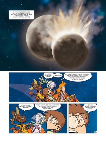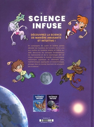 Une série pleine d'humour et de péripéties pour découvrir la science de manière amusante et intuitive Un soir, Justin et Solène reçoivent la visite d'Ulwazi, un étrange voyageur du futur. Venu leur délivrer un message crucial pour l'humanité, Ulwazi doit d'abord leur expliquer les bases scientifiques nécessaires à sa bonne compréhension... Justin, Solène et Ulwazi vont donc partir ensemble décoder les mystères de l'univers. De la Lune aux confins du système solaire, et même au-delà, Justin et Solène découvrent les concepts fondamentaux de l'astronomie et de la cosmologie afin de mieux comprendre le monde qui les entoure... tout en s'amusant CONCEPT : Véritable aventure riche en enseignement, cette série de bande dessinée destinée à la jeunesse présente de façon simple, pédagogique et amusante les principales théories de la science actuelle : l'astrophysique et le cosmos, la mécanique quantique et l'infiniment petit, les mathématiques appliquées et la biotechnologie. De quoi faire rêver les jeunes (et les plus grands) grâce à la Science... Infuse !