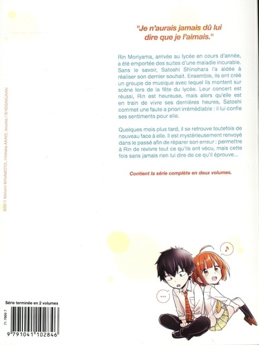 La comédie romantique qui va bouleverser votre été ! Je n'aurais jamais dû lui dire que je l'aimais. Rin Moriyama, arrivée au lycée en cours d'année, meurt des suites d'une maladie incurable. Sans le savoir, Satoshi Shinohara l'a aidée à réaliser son dernier souhait. Ensemble, ils ont créé un groupe de musique avec lequel ils montent sur scène lors de la fête du lycée. Leur concert est réussi, Rin est heureuse, mais alors qu'elle est en train vivre ses dernières heures, Satoshi commet une faute a priori irrémédiable : il lui confie ses sentiments pour elle. Quelques mois plus tard, il se retrouve toutefois de nouveau face à elle. Il est mystérieusement renvoyé dans le passé afin de réparer son erreur : permettre à Rin de revivre tout ce qu'ils ont vécu, mais cette fois sans jamais rien lui dire de ce qu'il éprouve...