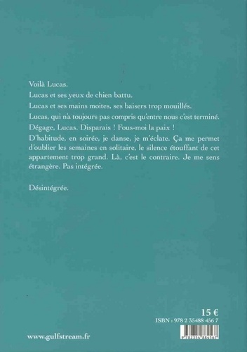 Voilà Lucas. Lucas et ses yeux de chien battu. Lucas et ses mains moites, ses baisers trop mouillés. Lucas qui n'a toujours pas compris qu'entre nous c'est terminé. Dégage, Lucas. Disparais ! Fous-moi la paix ! D'habitude, en soirée, je danse, je m'éclate. Ca me permet d'oublier les semaines en solitaire, le silence étouffant de cet appartement trop grand. Là, c'est le contraire. Je me sens étrangère. Pas intégrée. Désintégrée.