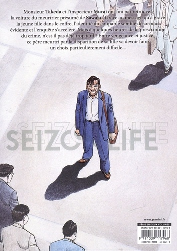 Takeda a enfin retrouvé le meurtrier de sa fille. Mais les preuves sont circonstancielles et sans aveux, l'assassin échappera donc définitivement à la justice. Avec l'aide de l'inspecteur Murai, bien décidé à faire plonger le coupable, et surtout avec celle de Sawako, qui par-delà la mort accuse son assassin, ce père devenu justicier tente le tout pour le tout... Dernier épisode d'une oeuvre captivante et humaine. On trouve derrière Seizon Life un duo artistique de grand talent : Nobuyuki Fukimoto et Kaiji Kawaguchi. C'est en 1979 que le premier fait ses débuts dans le magazine Gekkan Shonen Champion avec Yoroshiku Junjô Taishô. Mais c'est avec Akagi et Tobaku Mokushiroku Kaiji, ses titres phares, que son nom traverse les frontières. A travers ses oeuvres, il aime exposer des gens ordinaires face à des drames et des situations difficiles pour mieux faire ressortir ce qui peut se cacher en chacun de nous. La carrière de Kaiji Kawaguchi est lancée en 1968 avec Yo ga aketara. Ses oeuvres les plus connues sont Actor, Spirit of the Sun, Eagle et Jipang. Des récits souvent historiques où le Japon est traité sous bien des angles différents. Les deux auteurs ont d'ailleurs eu l'occasion de travailler ensemble sur un autre projet intitulé Kokuhaku - Confession. Avec Seizon Life, ils nous livrent une histoire aussi déchirante que poignante au travers de la quête de justice d'un père de famille. Une série qui souligne le besoin de rédemption de cet homme qui n'a jamais été réellement présent pour ses proches.