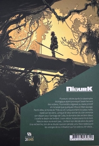 Sur une Terre post-apocalyptique où l'Humanité a régressé au stade primitif après une catastrophe nucléaire ayant asséché les océans et donné naissance à des chimères mutantes, quelques tribus survivent à l'état sauvage. Parmi elles, la horde de Thoz, où vit l'enfant noir, rejeté par les siens. Lorsque le vieux sorcier de la tribu le condamne à mort, l'enfant noir se met en marche pour Niourk, la ville des dieux, où ne subsistent que les vestiges de la civilisation du XX e siècle.