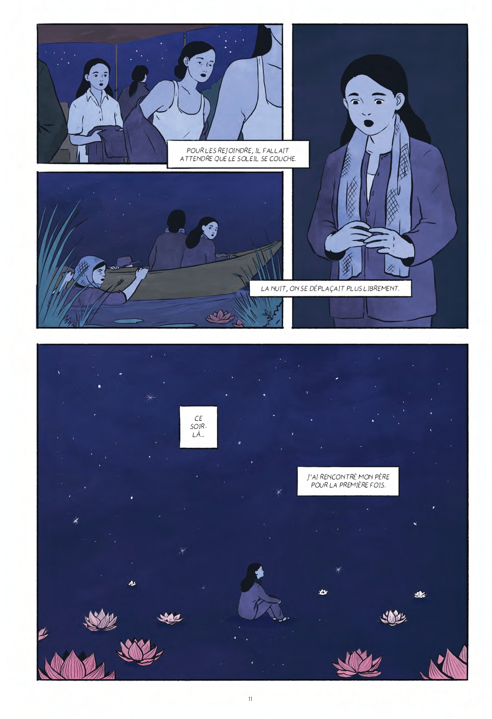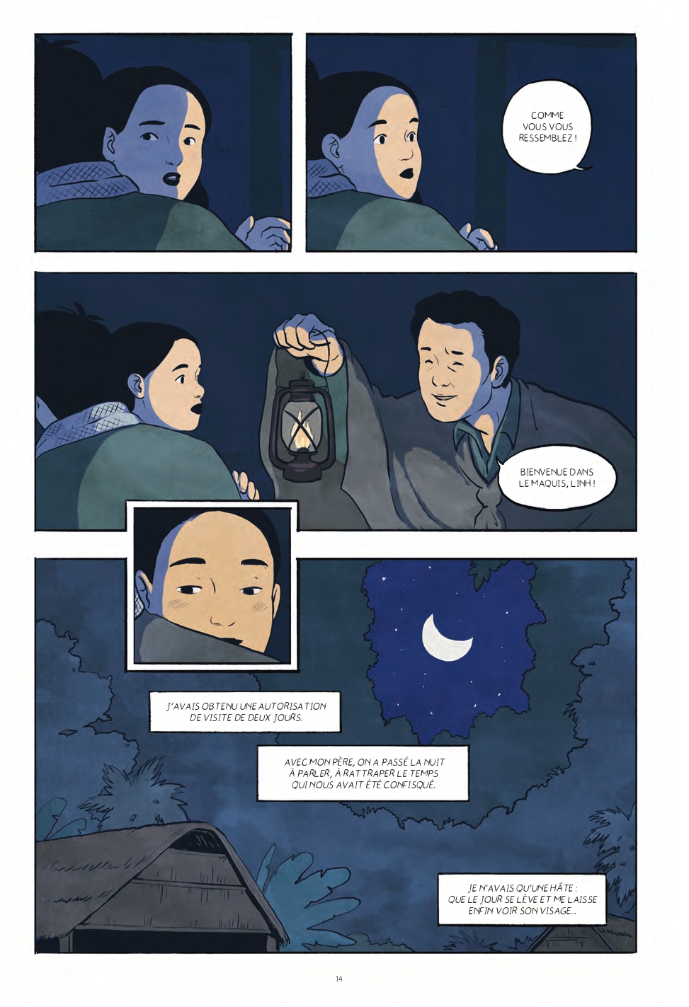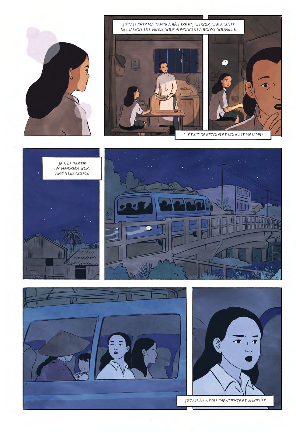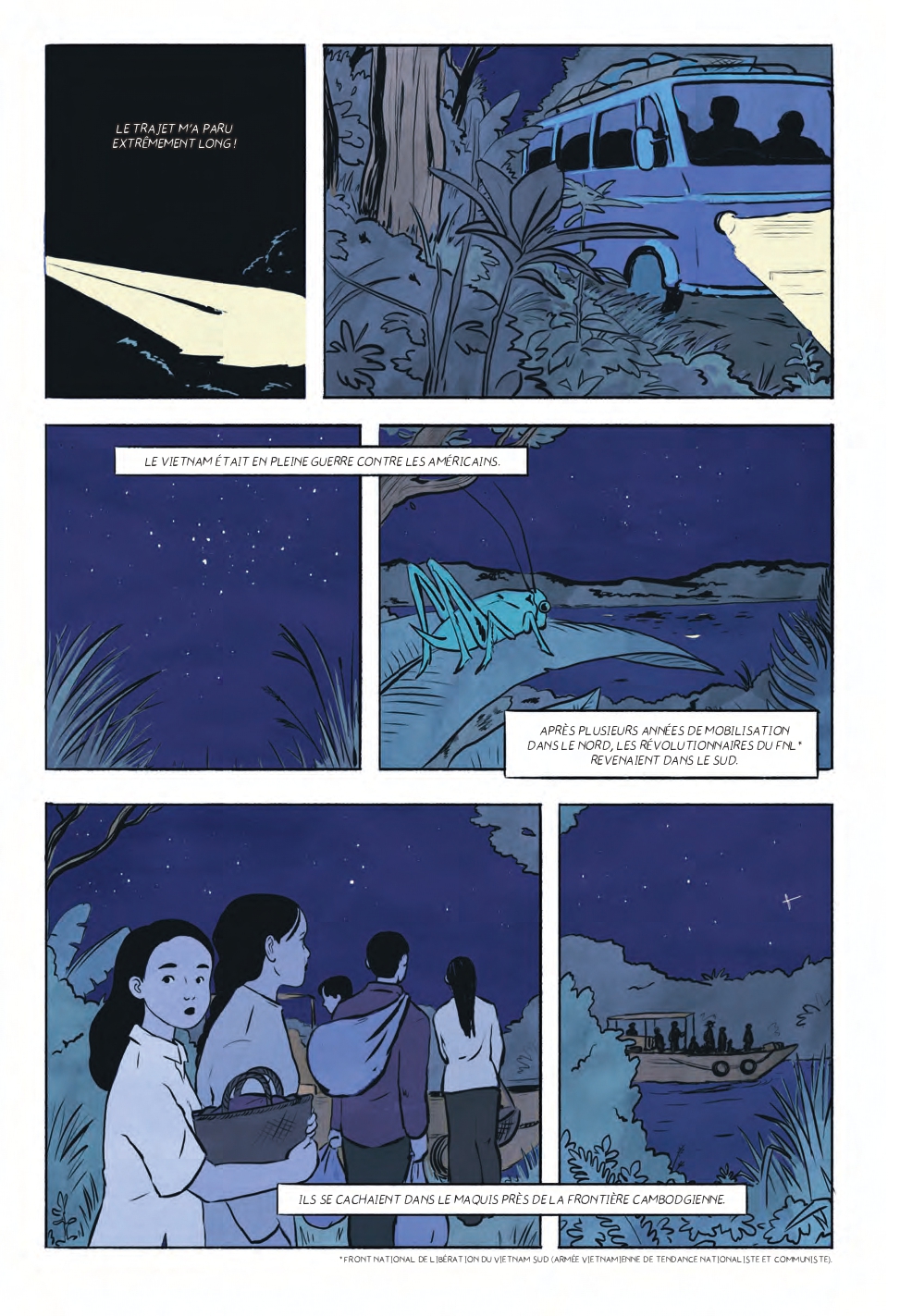 "J'avais 16 ans. C'était en 1969. Je vivais chez ma tante à Bên Tre et, un soir, une agente de liaison est venue nous annoncer la bonne nouvelle : il était de retour et voulait me voir ! Le Vietnam était en pleine guerre contre les Américains. Après plusieurs années de mobilisation dans le Nord, les révolutionnaires du Front National de Libération revenaient dans le Sud. Ils se cachaient dans le maquis, près de la frontière cambodgienne. Pour les rejoindre, il fallait attendre que le soleil se couche. La nuit, on se déplaçait plus librement. Ce soir-là, j'ai rencontré mon père pour la première fois."