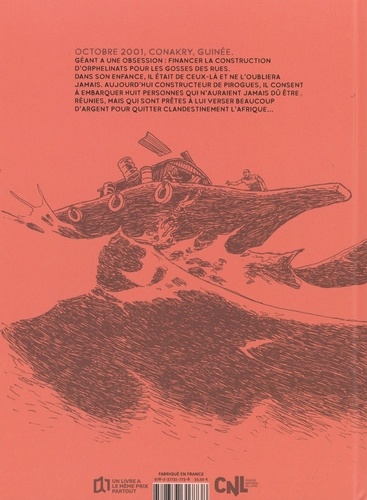 Octobre 2001, un mois après la chute des Twin Towers. Nous sommes en Guinée, bien loin de New York. Géant n'a qu'une seule obsession : sortir les enfants des rues de Conakry d'une misère qu'il a lui-même connue en réunissant suffisamment d'argent pour construire des orphelinats. Pour y parvenir, il est prêt à tout, y compris à accepter certaines compromissions auxquelles, son entreprise de fabrication de pirogues et de transport maritime de personnes, se prête bien. C'est ainsi qu'il se retrouve à embarquer sur une pirogue de grande taille huit personnes, toutes prêtes à payer cher pour quitter la Guinée... Sur ce bateau de fortune, saura-t-il concilier l'humanisme de ses objectifs avec les idées bien divergentes de ses passagers, entre le leader communiste déchu et rejeté par ses anciens alliés Chinois, l'homme rongé par l'obsession d'un Islam intransigeant, ceux portés par des croyances animistes ou encore les petits chapardeurs qui ne croient, eux, à rien ?