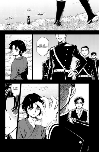 Glenn est parvenu à capturer un vampire et à mettre la main sur Ashuramaru, l'arme maudite de Mahiru. Mais une épreuve des plus cruelles l'attend... "Souris, Glenn. Tu es le chef de l'ordre de la Lune impériale désormais ! "