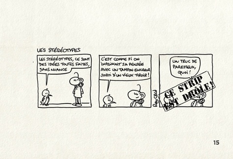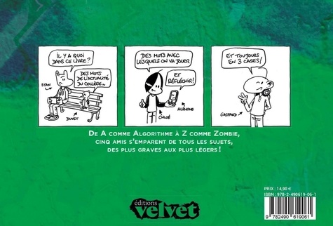 Sérieux, t'en penses quoi ? ce sont des mots de l'actualité glanés dans les médias, au collège ou à la maison, que de jeunes curieux cherchent à comprendre, à expliquer... pour aller plus loin que le bout de leur nez. Et toujours en 3 cases ! De A comme Algorithme à Z comme Zombie, Sérieux, t'en penses quoi ? est un recueil de strips destiné aux jeunes lecteurs à partir de la 6e. Chloé, Stan, Gaspard, Duvet le piaf et Alphone le smartphone s'emparent de termes d'actualité, des plus graves aux plus légers, pour réfléchir, s'amuser, prendre du recul, développer leur esprit critique... et commettre quelques pirouettes et jeux de mots ! Par un graphisme à la ligne claire et des textes synthétiques, c'est l'esprit satirique du dessin de presse qui est transmis aux collégiens, avec humour, ouverture d'esprit et conviction. Les 86 strips sont accompagnés d'illustrations pleine page où nos héros sortent des cases...