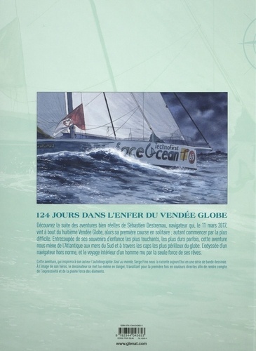 Une traversée en solitaire. Le monde à l'horizon. Troisième tome sur quatre de l'adaptation de l'autobiographie de Sébastien Destremau, navigateur venant cet hiver de participer à son second Vendée Globe. Notre série relate l'enfance tumultueuse du navigateur, jusqu'à son premier Vendée Globe, sa première course en solitaire, qu'il parviendra à mener à terme alors que tout laissait penser le contraire. De l'Atlantique aux mers du Sud et à travers les caps les plus périlleux du globe, revivez tant l'odyssée d'un navigateur hors norme que le voyage intérieur d'un homme mu par la seule force de ses rêves. Une grande aventure mise en images par l'incroyable technique en couleurs directes de Serge Fino.